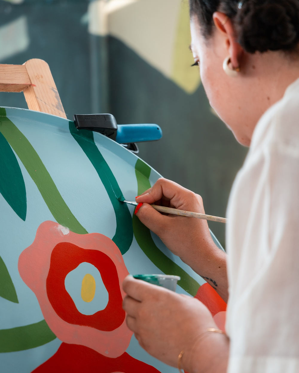 Marion est originaire de La Réunion. Elle est illustratrice, directrice artistique, et formée aux écoles Duperré et Penninghen. Mais au-delà de son parcours académique, c’est sa sensibilité qui marque les esprits. Son nom d’artiste, Piment Martin, est un clin d’œil à son enfance, un surnom affectueux donné par sa grand-mère pour dire « petit garnement ». Et en effet, il y a chez elle cette touche d’espièglerie, de curiosité, et de liberté qui fait tout le charme de son travail. Elle possède un talent rare : celui de créer des œuvres qui font du bien. Son univers est joyeux, vivant, solaire. Il parle de corps, de nature, de moments simples, avec un regard à la fois tendre et profondément graphique. On pense parfois à Matisse dans sa manière de jouer avec les couleurs et les formes, mais ce qu’elle propose est entièrement à elle. Chaque trait, chaque teinte raconte une émotion.