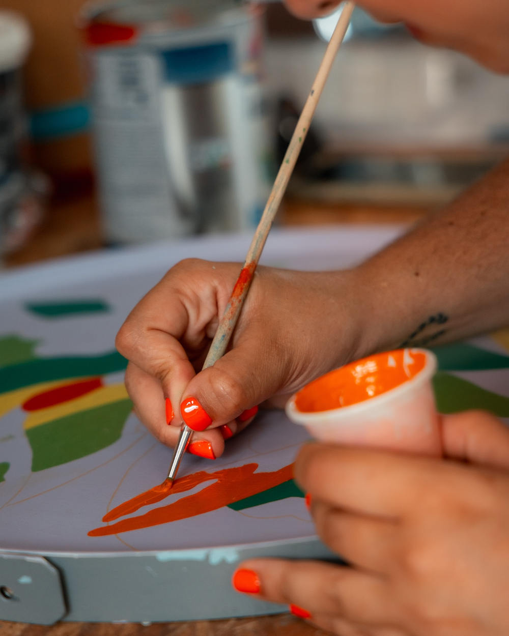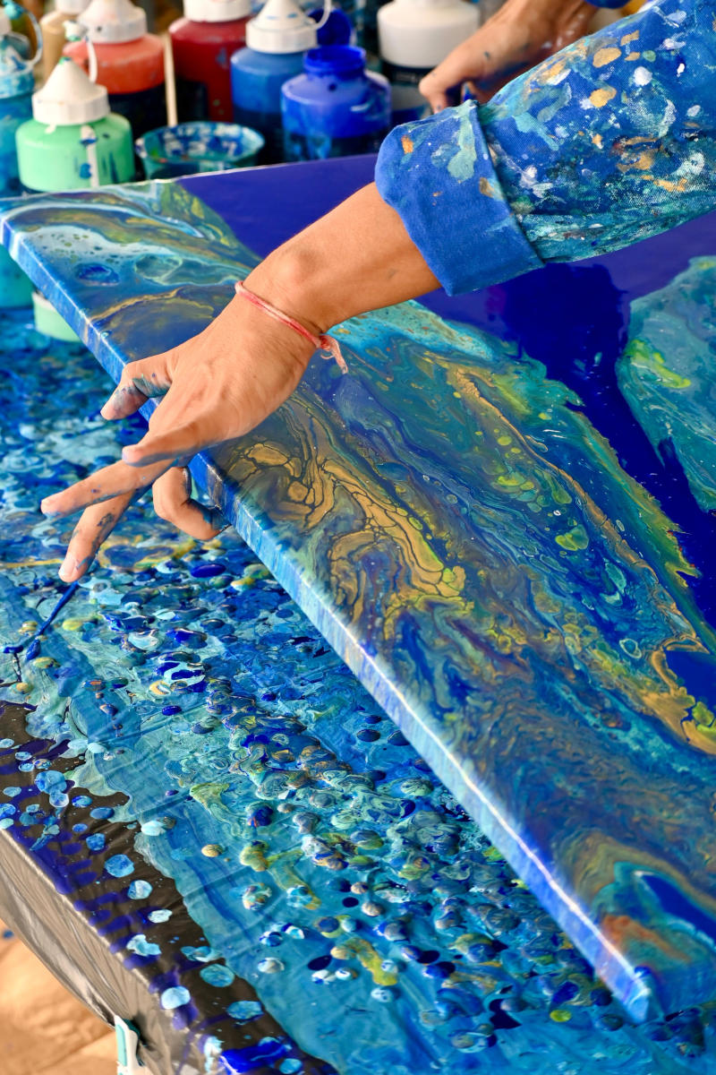 Ses créations — toiles, installations et pièces design — révèlent un dialogue constant entre maîtrise et spontanéité, énergie et émotion.