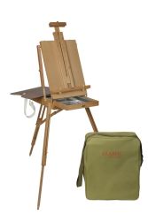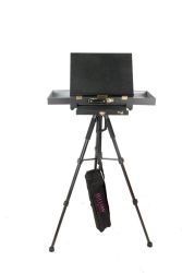 à propos de cette oeuvrePin noir verni, housee de transport, tiroir de rangement quatre compartiments, palette noir grand format 46 cm x 28 cm, H.57cm x P. 17 cm x L. 43,5 cm Poids 4 kg